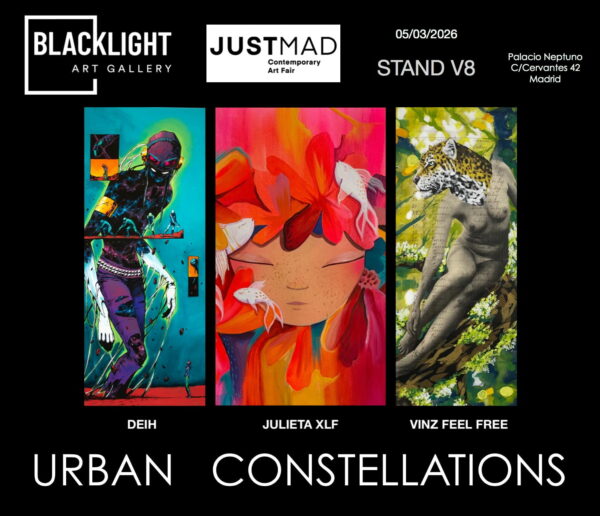 Blacklight Art Gallery presents Urban Constellations, an exhibition proposal that reaffirms the role of Valencian urban art as one of the most solid and evolved expressions of emerging contemporary art. Participation in JUSTMAD 2026 aims to consolidate the gallery as a bridge between urban culture and new artistic languages gaining presence in national and international art fairs.